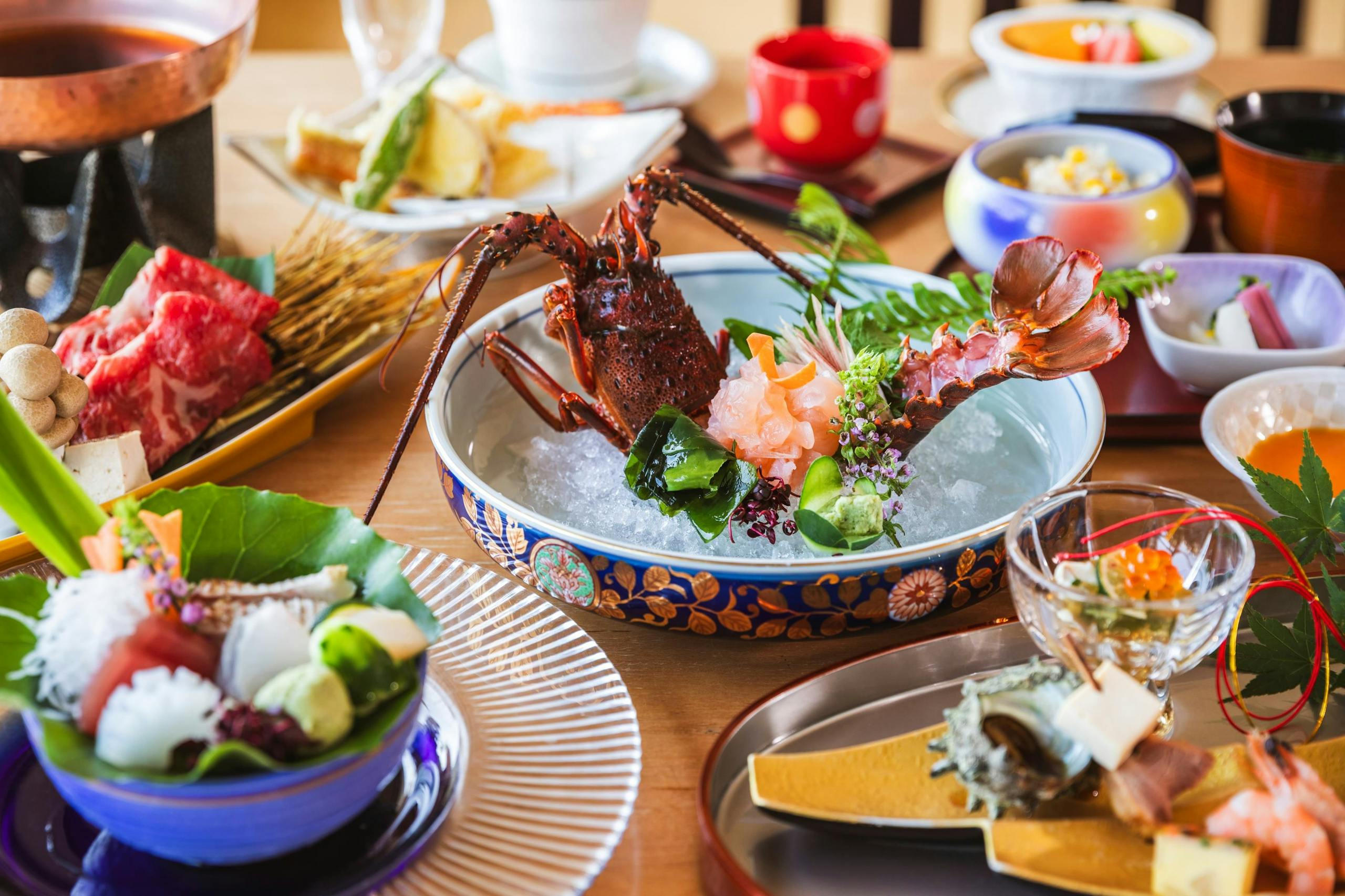 料理は地元の海の幸を使った豪華な会席スタイルで、特に伊勢海老やアワビなど豪華な魚介を楽しめます✨