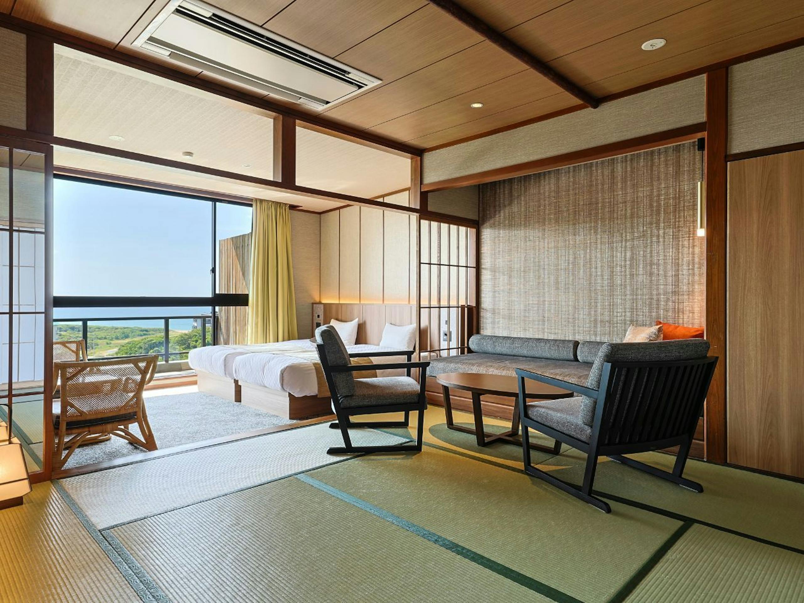 和モダンな客室からは海が望め、日常を忘れて癒されるひとときが過ごせます✨