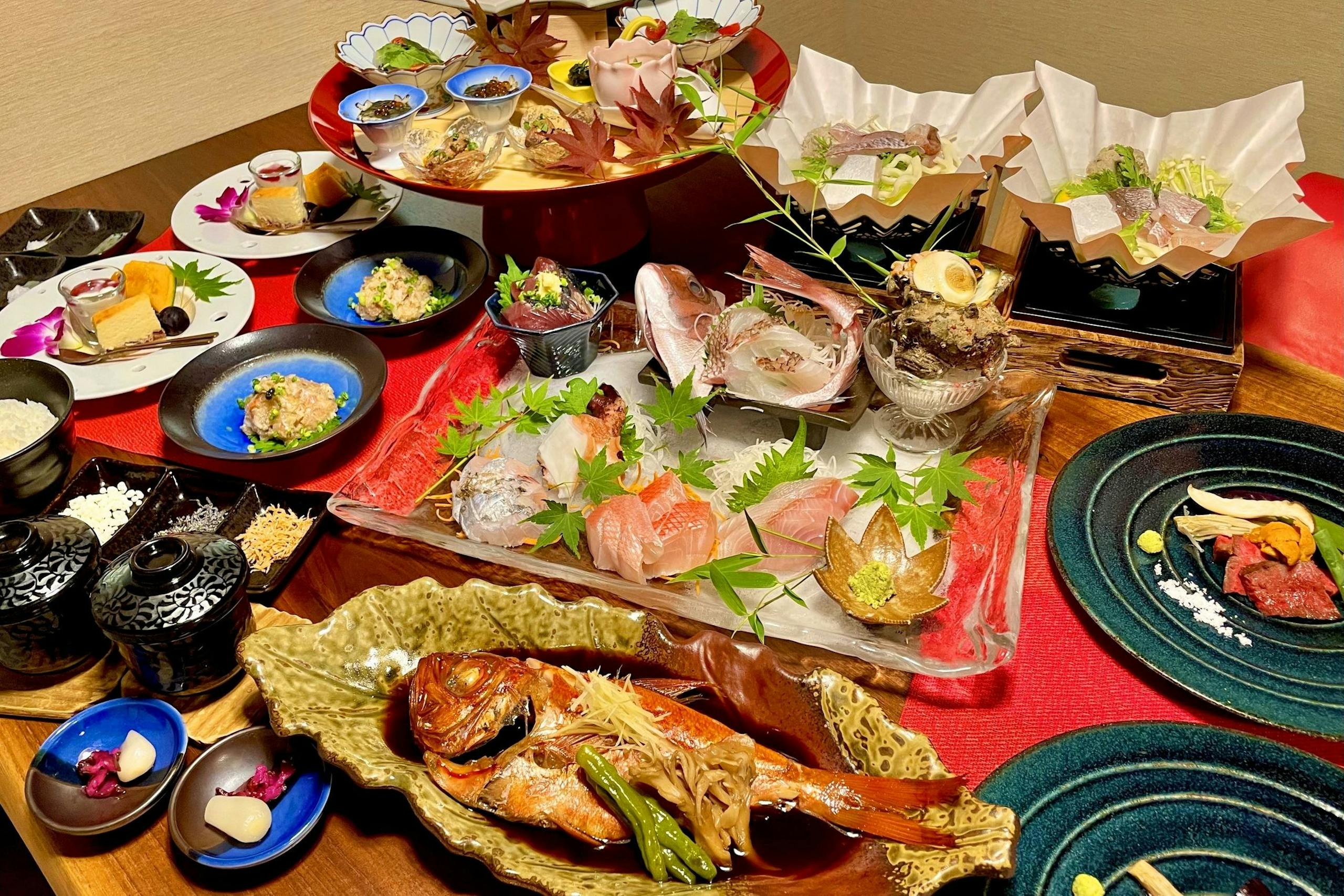 - 本格的な懐石料理で海の幸を堪能